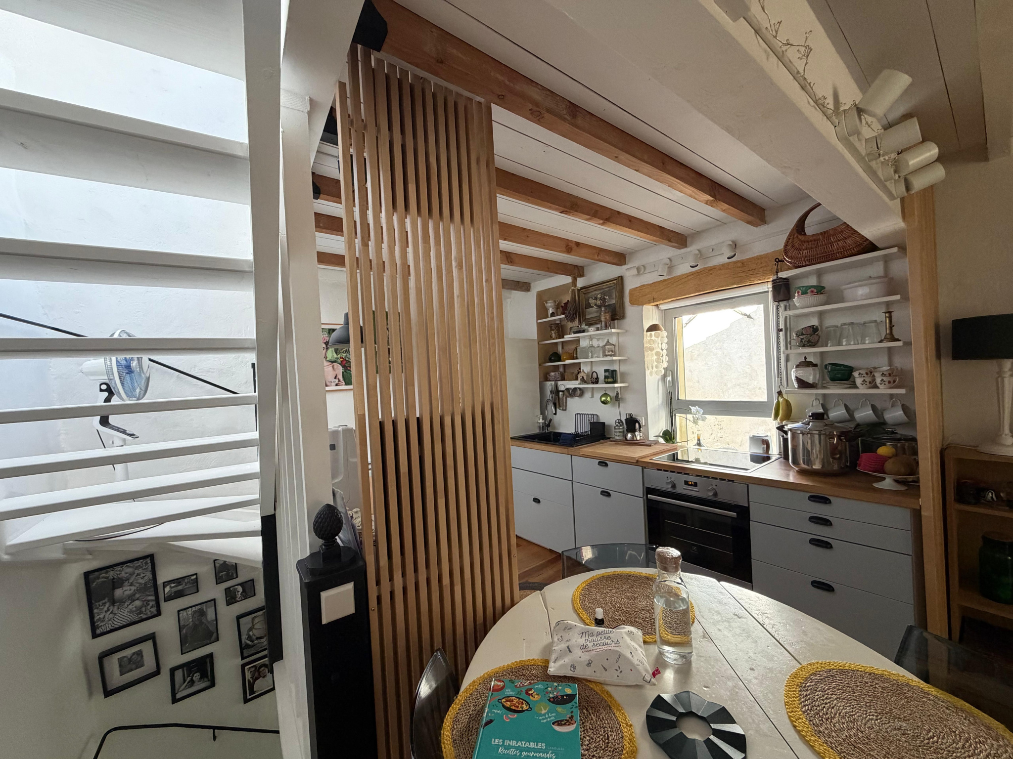 Au 1er étage : Un beau séjour de 25 m² avec cuisine ouverte et entièrement équipée. 2 ème et dernier étage : une deuxième chambre d'environ 15 m² avec une terrasse sans vis-à-vis.