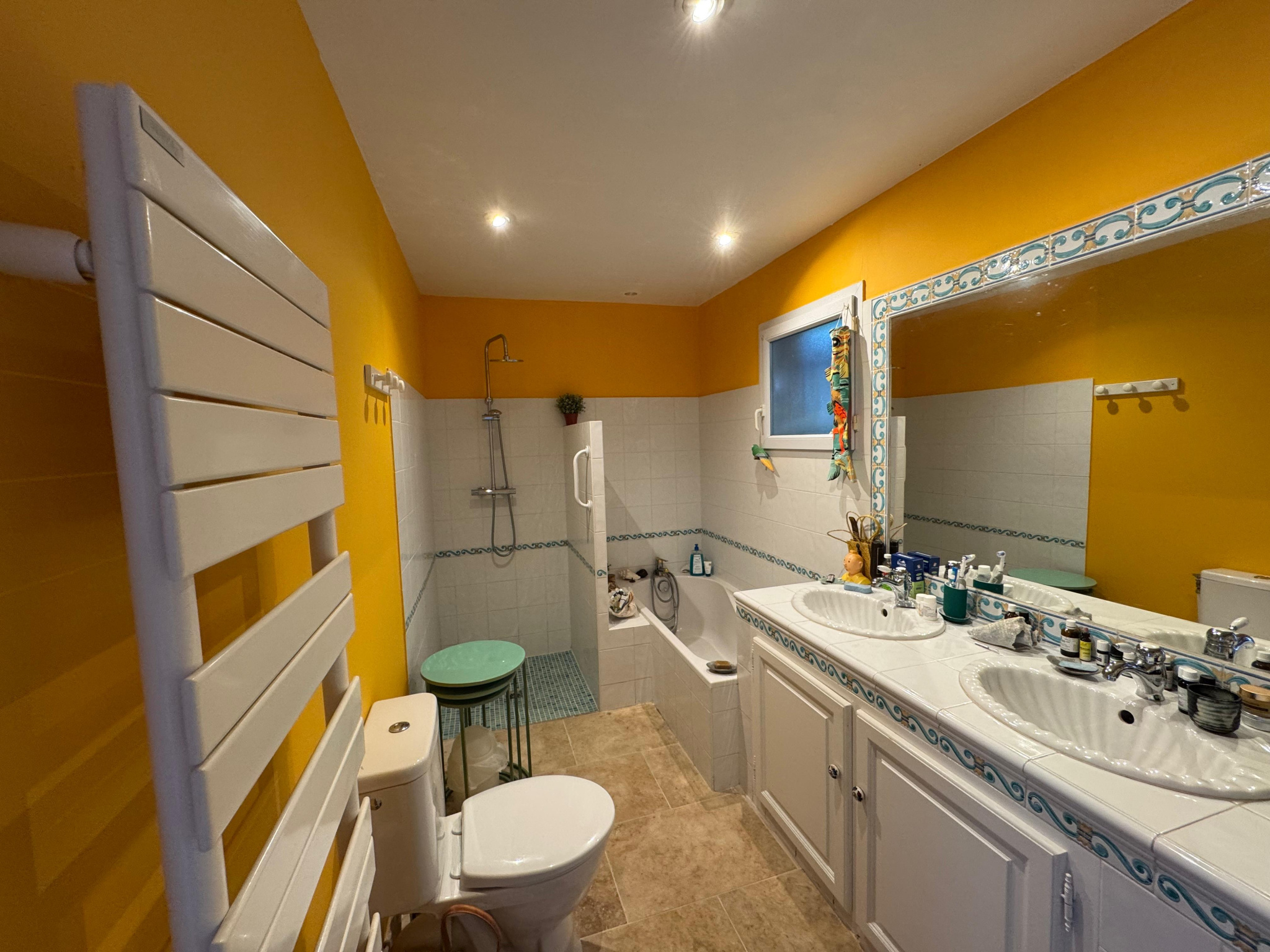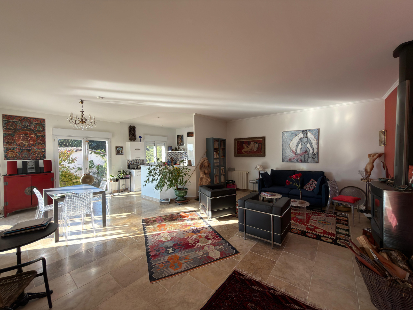 La maison se compose d'une entrée de 10 m², d'un séjour lumineux de 50 m² avec pôele à bois et climatisation réversible, une cuisine ouverte et équipée, 3 chambres avec rangements de 12.30 m², 10.30 m² et 9.50 m², un bureau ou chambre suplémentaire de 19.80 m², une salle de bain avec douche et baingoire, une buanderie et un WC séparé. Jardin arboré de 750 m² avec couloir de nage 8.50mx2m et terrasse bois.