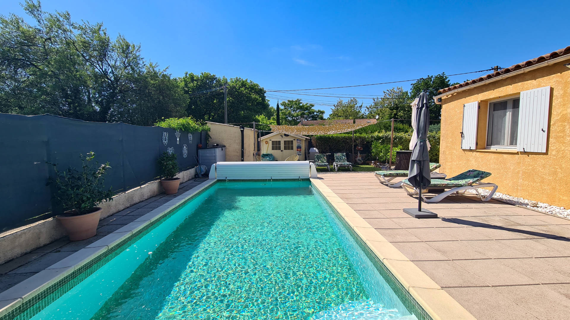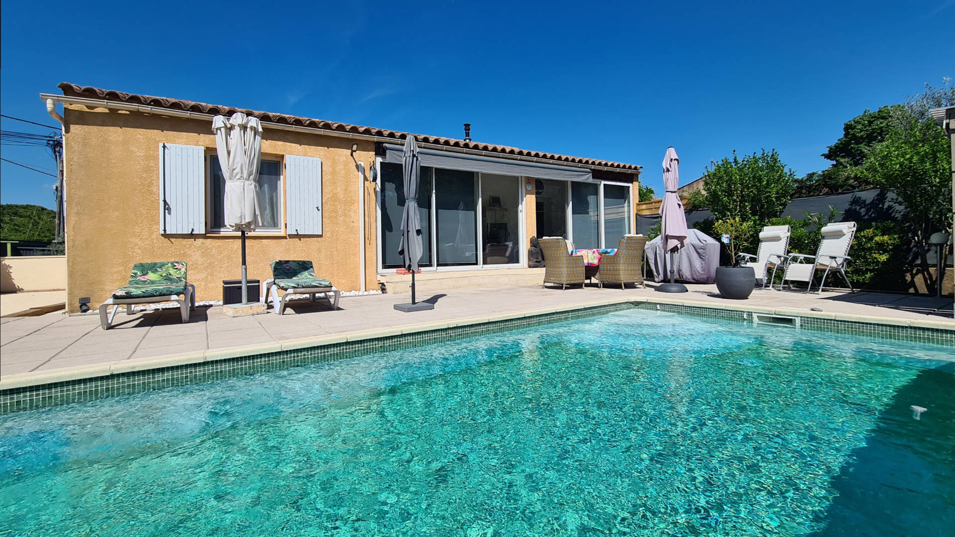 Située à seulement 3km d'UZES. Magnifique villa de plain-pied de 122m² sur une parcelle de 500m² cloturée et disposant d'une piscine chauffée au sel pour prolonger le plaisir de la baignade avec dispositif de volet de protection. L'intérieur se découvre autour d'un bel espace de vie constitué d'un salon d'environ 30m² avec une véranda isolée dans son prolongement d'environ 20m² et d'un espace cuisine ouvert sur la pièce de vie grace à sa menuiserie au style industriel, laissant ainsi pénétrer la lumière. L'espace nuit principal se compose de 3 chambres et d'une salle de bains avec douche et baignoire. Pour les invités, une pièce annexe permet un quatrième couchage. L'espace extérieur est conçu pour un entretien minimum avec de belles terrasses autour de la piscine, un jeu de boules et un accueil pour le stationnement des véhicules côté Nord. Climatisation, poele à granules, portail automatisé, alarme. Véritable confort énergétique. Pas de travaux à prévoir. Consommation énergétique : 104 kw/m2/an. Emission de gaz à effet de serre : 3 kgCo2/m2/an. Les honoraires sont à la charge du vendeur. Les informations sur les risques auxquels ce bien est exposé sont disponibles sur le site www.georisques.gouv.fr