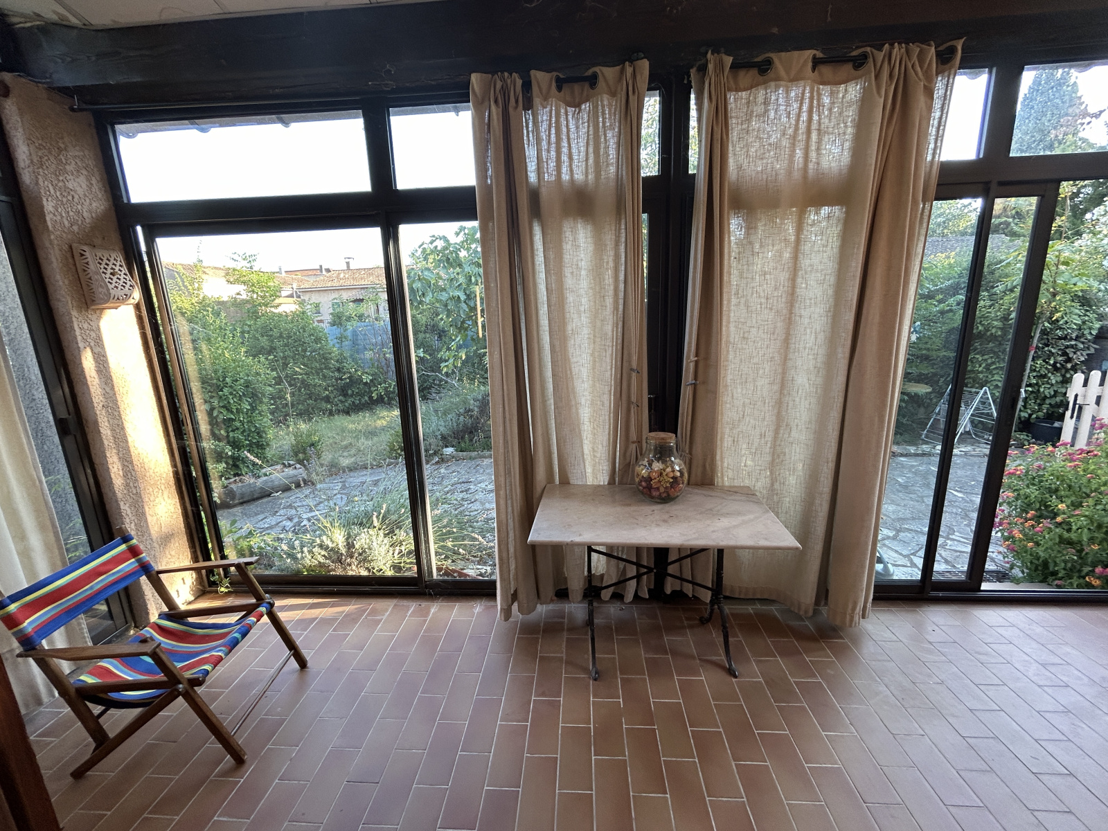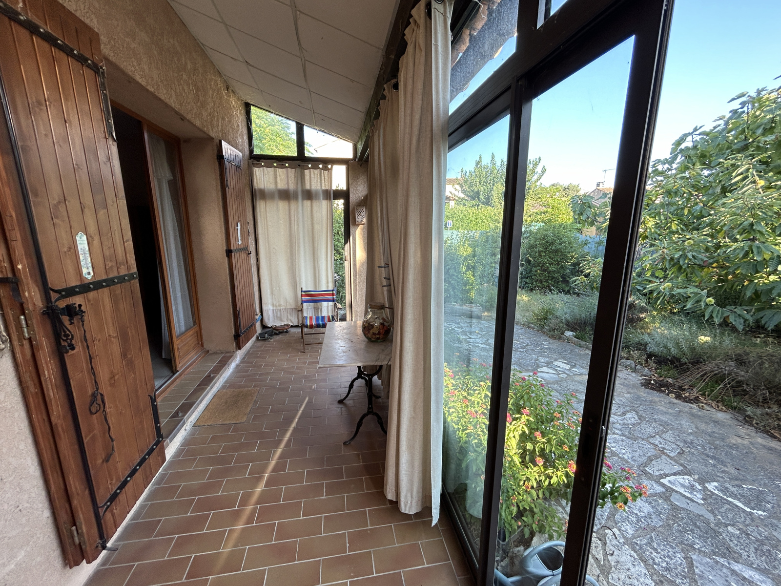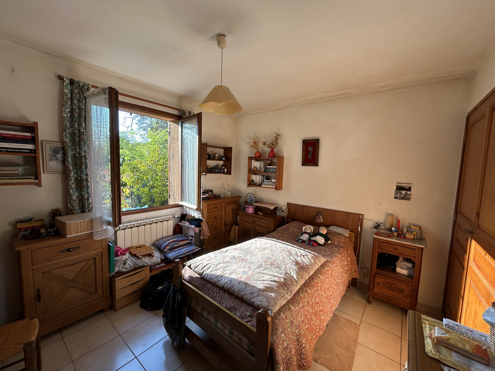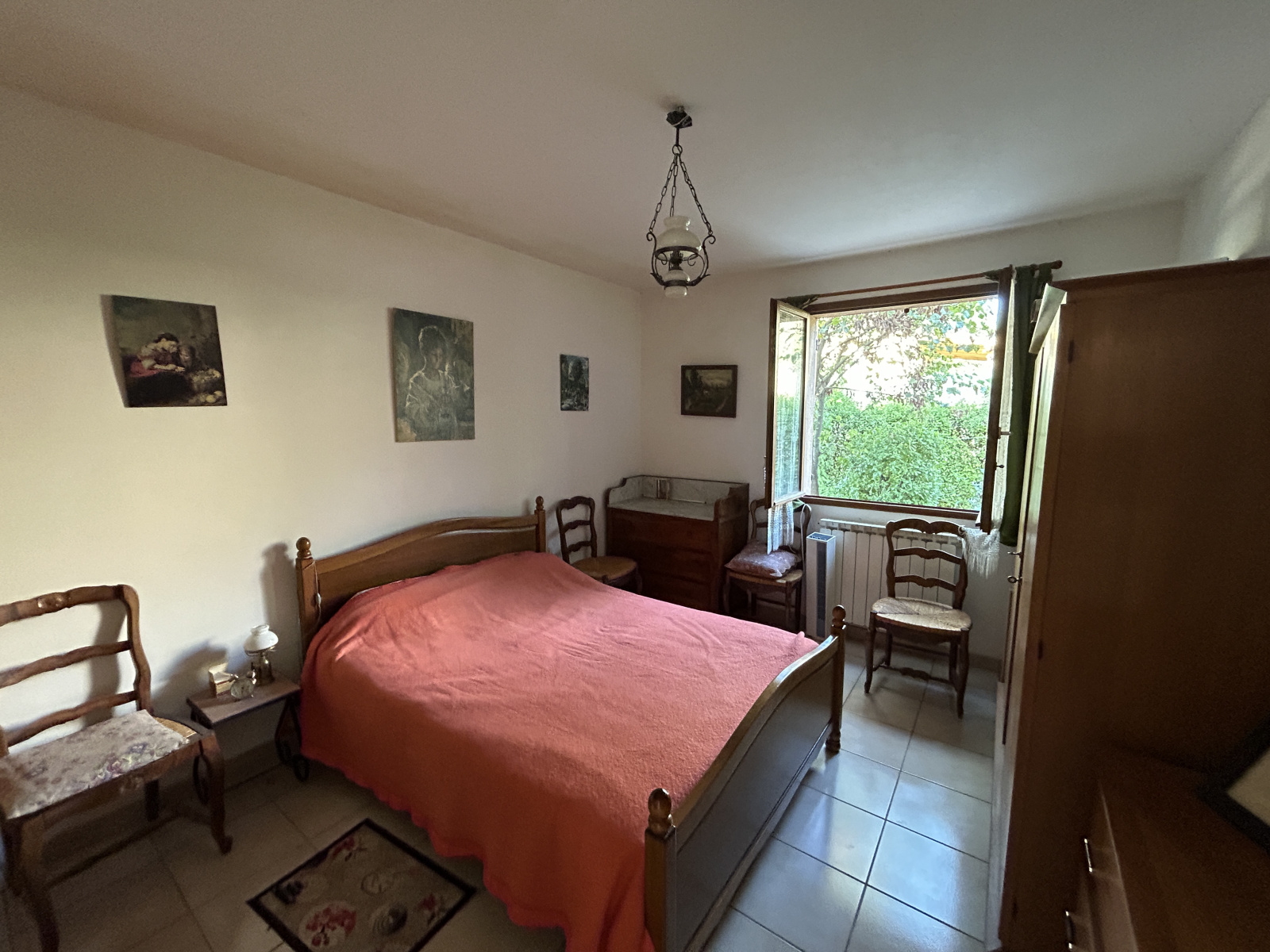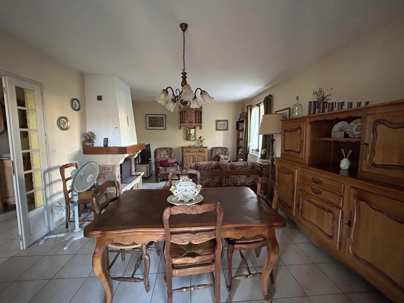 Aménagée de meubles. donne accès au garage