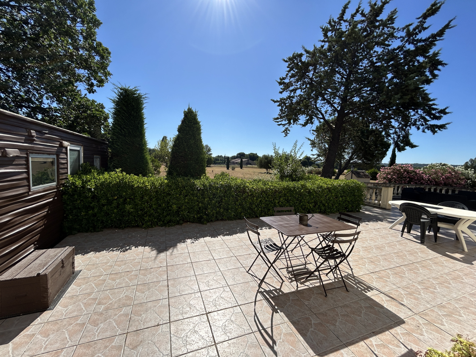 Proche UZES 15min en vélo et village de St QUENTIN LA POTERIE à pied. Dans un environnement exceptionnel, nous vous présentons cette charmante habitation de 110m² composée d'une belle et grande pièce de vie de 70m² ouverte sur de larges terrasses sur le SUD/EST avec une vue imprenable sur le duché d'UZES et les environs. 2 chambres principales avec espace douche. Le bien dispose d'un mobil-home attenant avec 2 chambres supplémentaires pour accueillir famille et amis. Un grand garage de 30m² pouvant être aménagé en studio indépendant. L'espace piscine de 12X8 avec ses larges plages pour des moments de détente uniques. La parcelle de terrain est entièrement clôturée et peut aisémant accueillir 1 ou 2 chevaux ou bien de l'habitat léger type ( tinys houses ou roulottes ). Vous y trouverez de majestueux arbres pour profiter d'un bel ombrage l'été. Le confort de la cheminée et de la climatisaton dans la pièce principale. Un endroit simplement magique, en phase avec ceux qui rêvent de nature, de tranquilité tout en restant proche des commodités ! Consommation énergétique : 123kw/m2/an. Emission de gaz à effet de serre : 3kgCo2/m2/an. Date des diagnostics : 02/06/2025. Les informations sur les risques auxquels ce bien est exposé sont disponibles sur le site www.georisques.gouv.fr