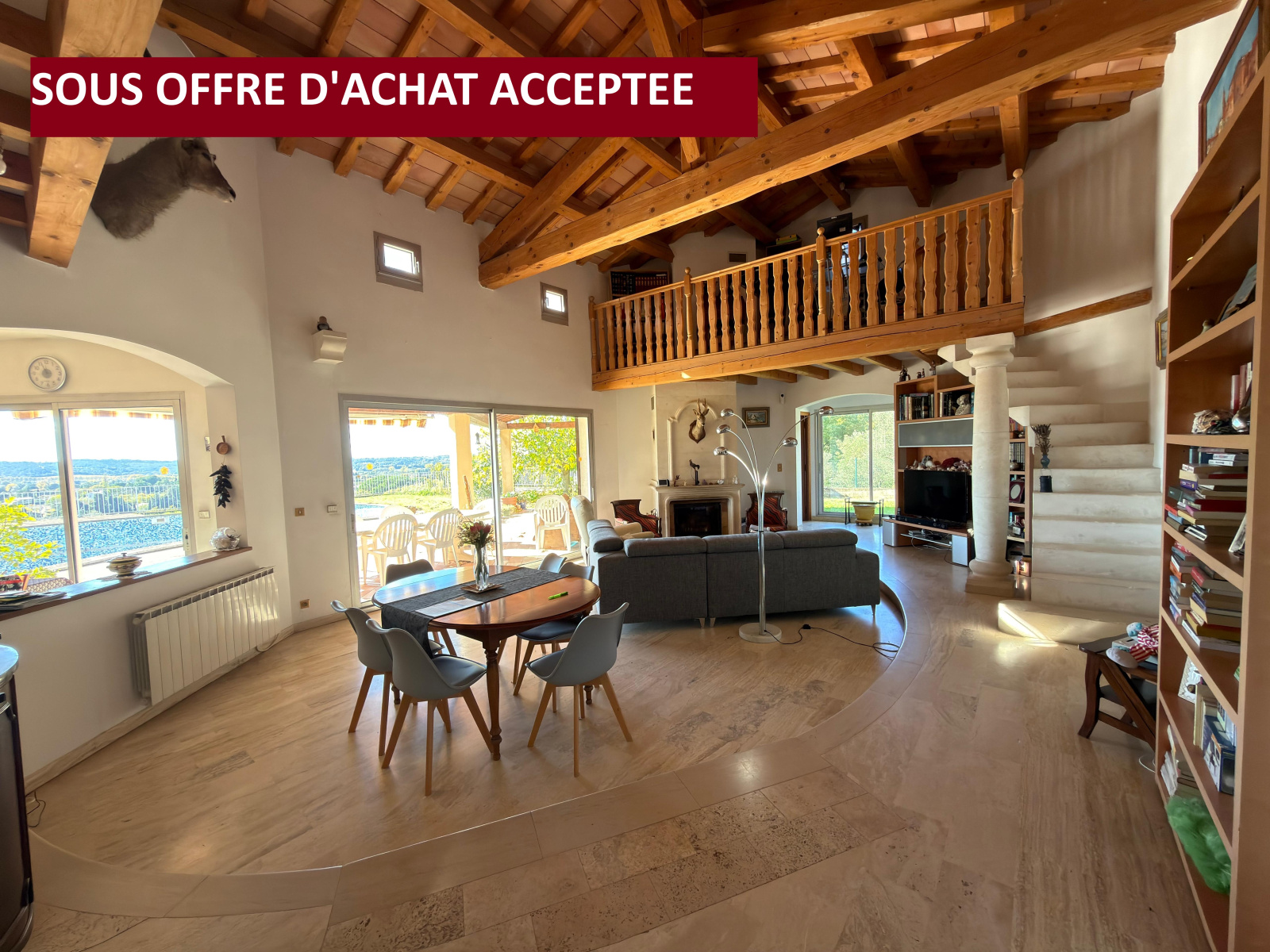 Belle et atypique villa des années 80 en position dominante de 148 m² hab. avec vue imprenanble sur le Duché d'UZES et ses environs. composée d'une large partie de plain-pied avec 2 chambres en suite sur l'aile Ouest et 1 chambre séparée dans l'aile Est avec salle d'eau privative. Dortoir en étage. Buanderie. Grande pièce de vie avec belle hauteur sous plafond rampant et mezzanine avec son espace bureau ou bibliothèque. Cuisine dînatoire séparée avec ouverture passe-plats sur le salon. garage séparé réalisé en 2015. Belle parcelle de 1900 m² cloturée avec accès par portail automatisé. Travertins au sol, chauffes-eau récents. Prévoir mise au goût du jour. Assainissement autonome, Piscine à renover entièrement ou bien à remplacer par un modèle plus petit. Consommation énergétique : 221 kw/m2/an. Emission de gaz à effet de serre : 7 Co2/m2/an Date des diagnostics 22/10/2025. Les honoraires sont à la charge du vendeur Les informations sur les risques auxquels ce bien est exposé sont disponibles sur le site www.georisques.gouv.fr