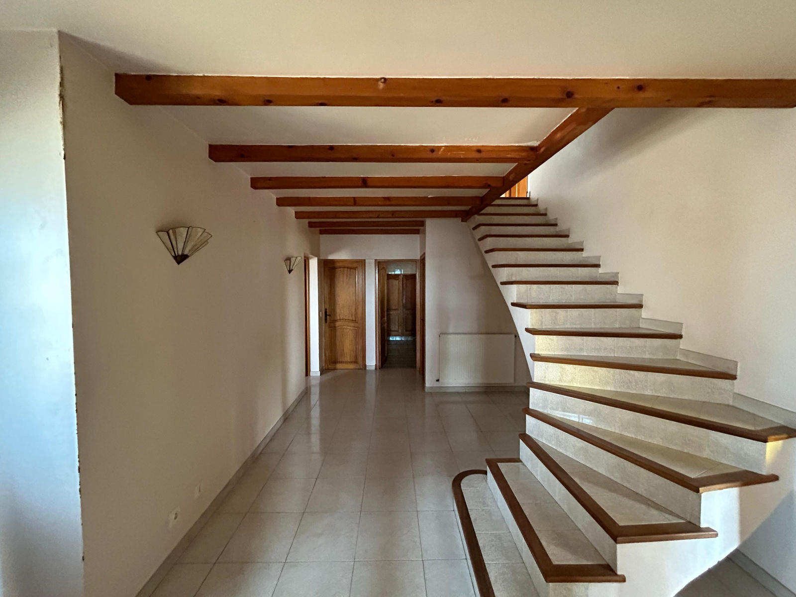 Au rez-de-chaussée : un séjour lumineux de 35 m² avec cheminée, poutres apparentes et avec un accès direct à la première terrasse de 22 m². Une cuisine séparée et équipée, une chambre de 15.30 m², une salle d'eau, un wc séparé et une grande pièce de 35 m² pouvant être transformée en cellier ou studio independant.