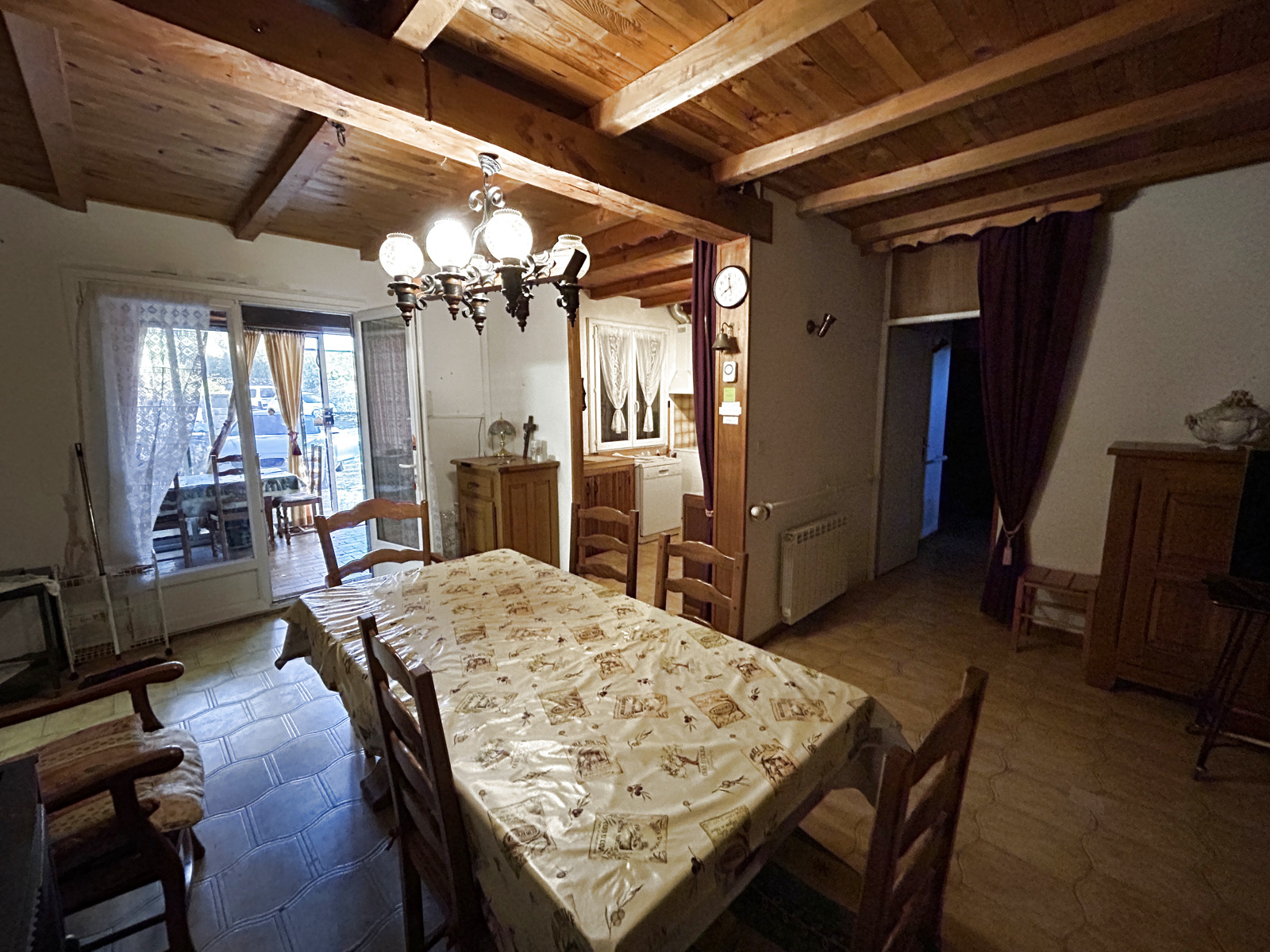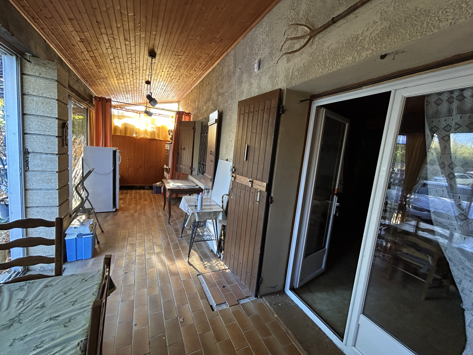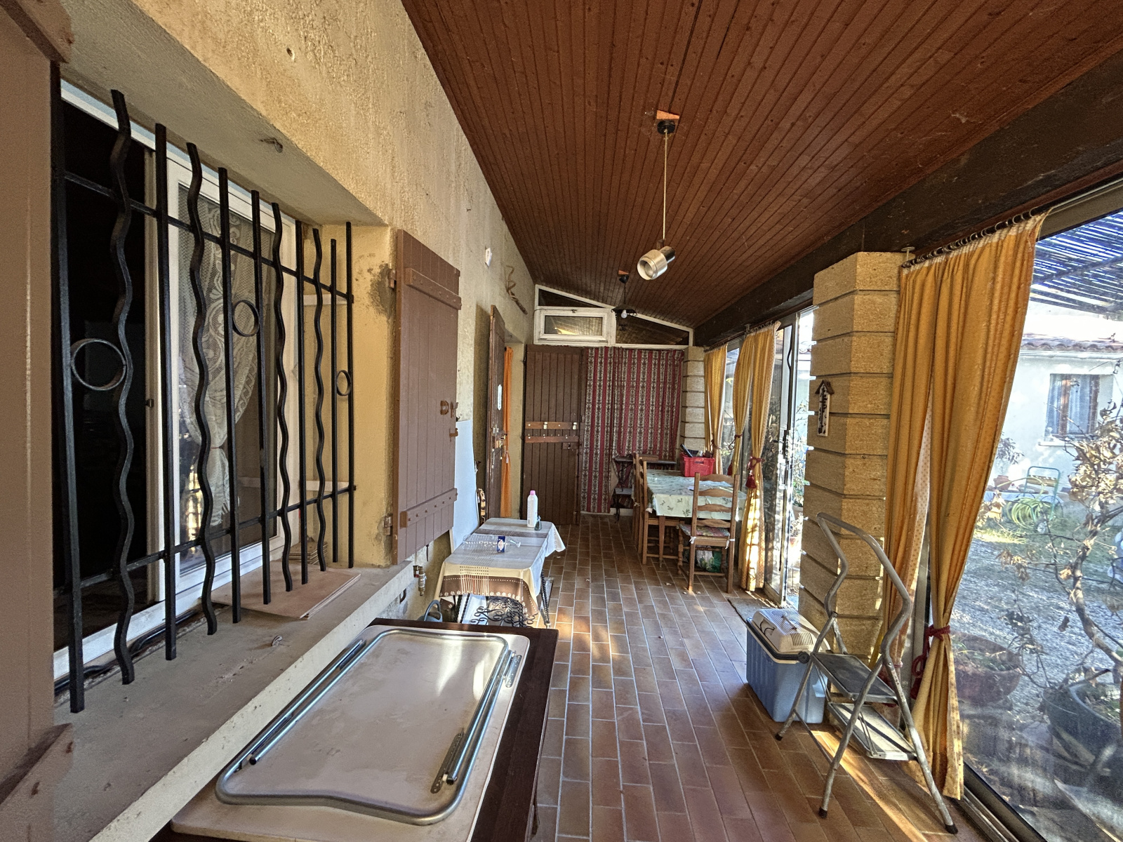 EXCLUSIVITE TERRA TRANSACTION. Au coeur du village de ST QUENTIN LA POTERIE. Sur une parcelle de 329m². Maison de plain-pied d'environ 70m² habitables avec véranda, débarras et ateliers divers. Garage indépendant. La construction dispose d'un jardin plein sud. Pièce principale en L de 35m² avec cuisine. Poele à bois et climatisation. 2 chambres. Combles avec charpente métallique. Double vitage PVC. Prévoir rafraichissement.Opportunité avec Beau potentiel !. consommation énergétique : 166kw/m2/an. Emission gaz à effet de serre : 5kgCo2/m2/an. Les informations sur les risques auxquels ce bien est exposé sont disponibles sur le site : www.georisques.gouv.fr. Honoraires à la charge du vendeur.