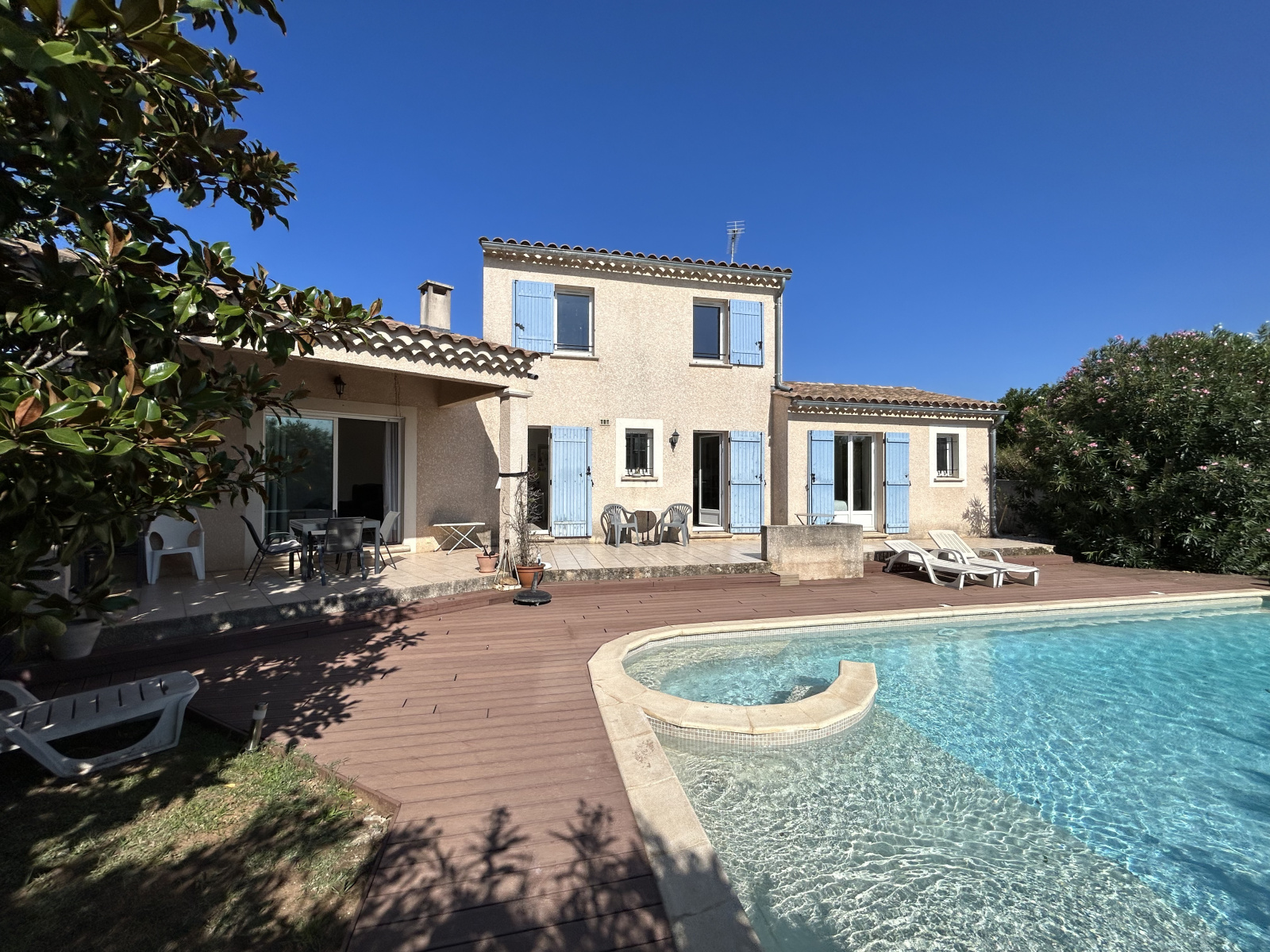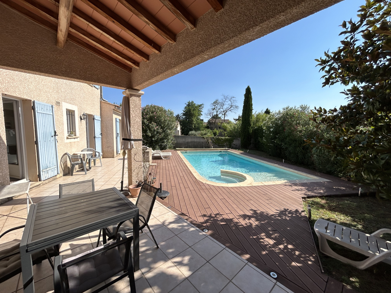 EXCLUSIVITE. A pied du village de ST QUENTIN LA POTERIE. Belle maison de 127m² habitables construite en 2003 et implantée sur une parcelle de 800m². La pièce à vivre de 46,5m² baignée de lumière avec sa cuisine équipée s'articule autour de la terrasse couverte et donne sur l'espace piscine. Une chambre en suite au rdc avec son dressing et sa salle d'eau. 2 chambres à l'étage avec salle de bains et wc. 1 chambre attenante au rdc avec salle d'eau. Atelier indépendant de 14,5m². Climatisation gainable. Forage. Arrosage automatique. Piscine 10X5 carrelée avec plage et fond descendant. Au calme et sans vis à vis. Consommation énergétique : 133kw/m2/an. Emission de gaz à effet de serre 4KgCo2/m2/an Date des diagnostics 13/09/2024. Estimation des coûts annuels entre 1310€ et 1830€. Les honoraires sont à la charge du vendeur. Les informations sur les risques auxquels ce bien est exposé sont disponibles sur le site www.georisques.gouv.fr